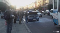 Під час руху з-під капоту почав валити густий білий дим, який було видно від ЦУМу.