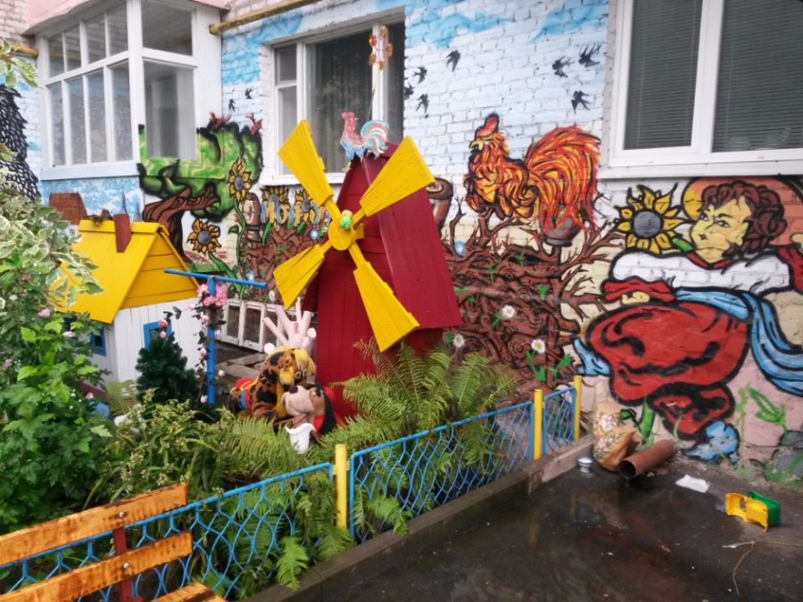 «Я не професійний маляр, але картини на стінах полюбляю писати, то моє хобі, – сміється Олександр. – Це просто порив фантазії, полотна без ескізів. Ми попередньо обговорили концепцію малюнків. Я став – і намалював. Часу на те не шкода, бо творили задля благоустрою рідного двору, заради посмішок дітей».