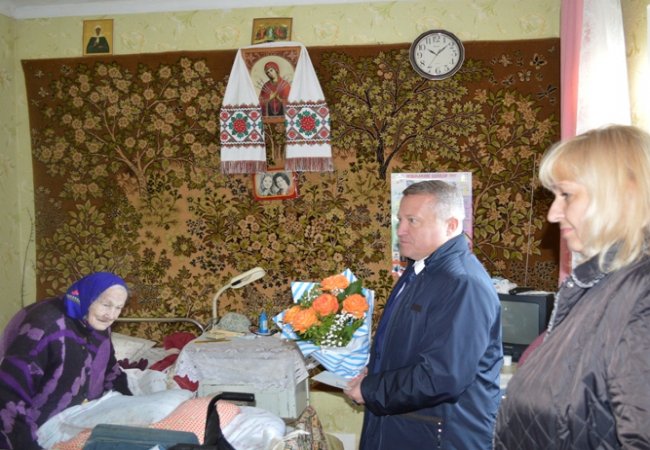 Вони вручили ювілярці квіти та матеріальну допомогу.