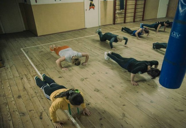 Друга частина заняття була присвячена основним аспектам самозахисту - найпростішим ударам та методам звільнення від захоплень. Учасниці відпрацювали всі елементи в парах.