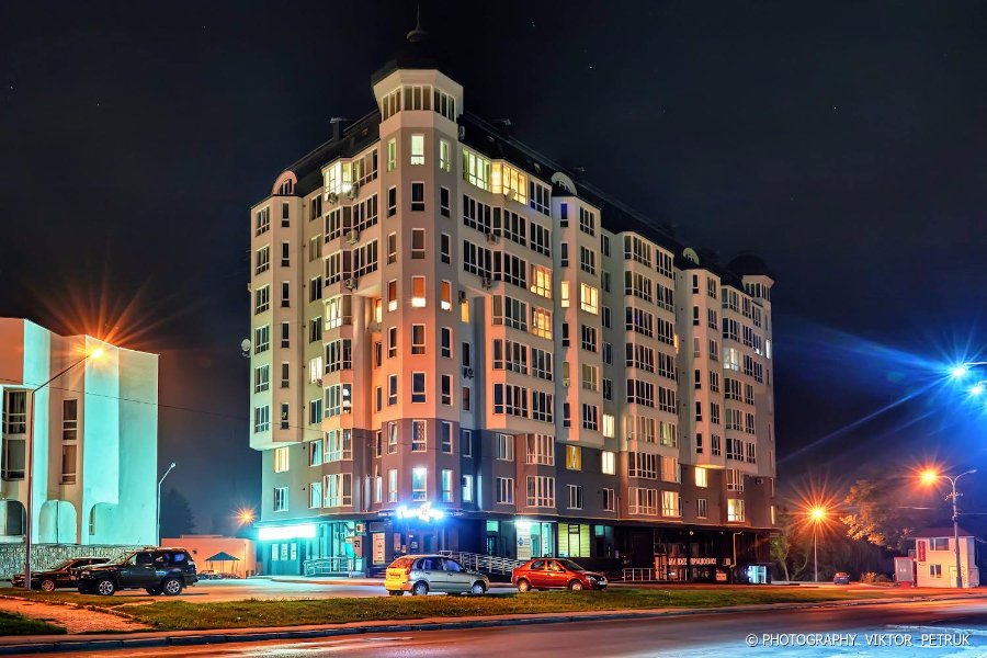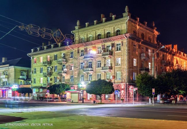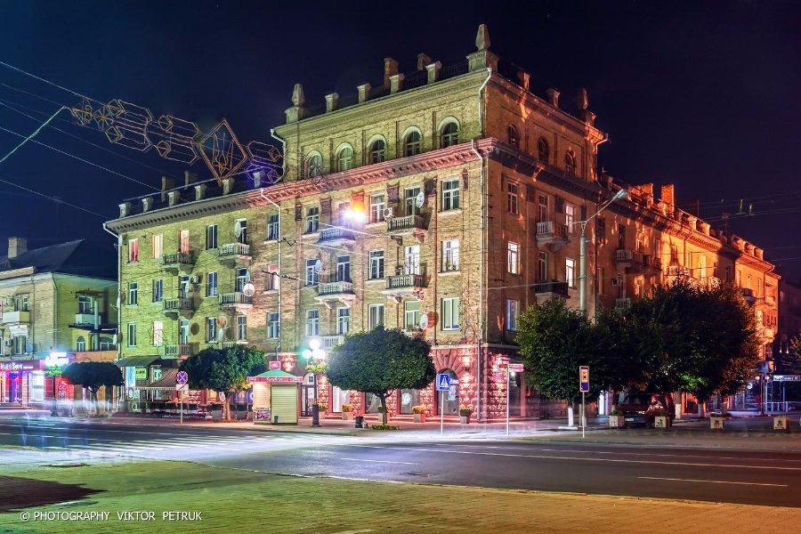 На світлинах – 6 локацій в Луцьку. Так, у вечірньому світлі сфотографовані розважальний комплекс «Промінь», район поблизу луцької «податкової», головний корпус СНУ ім.Лесі Українки, Театральний майдан.