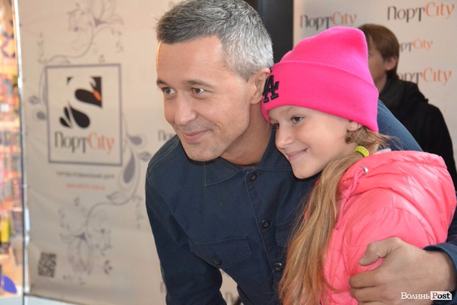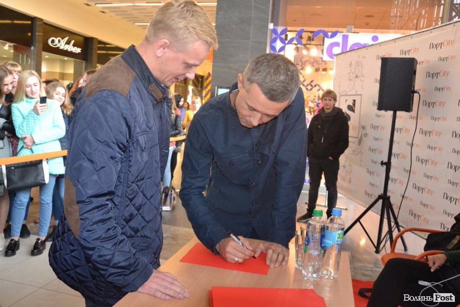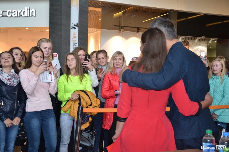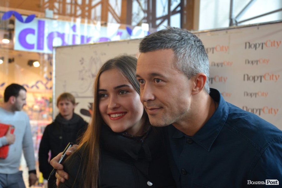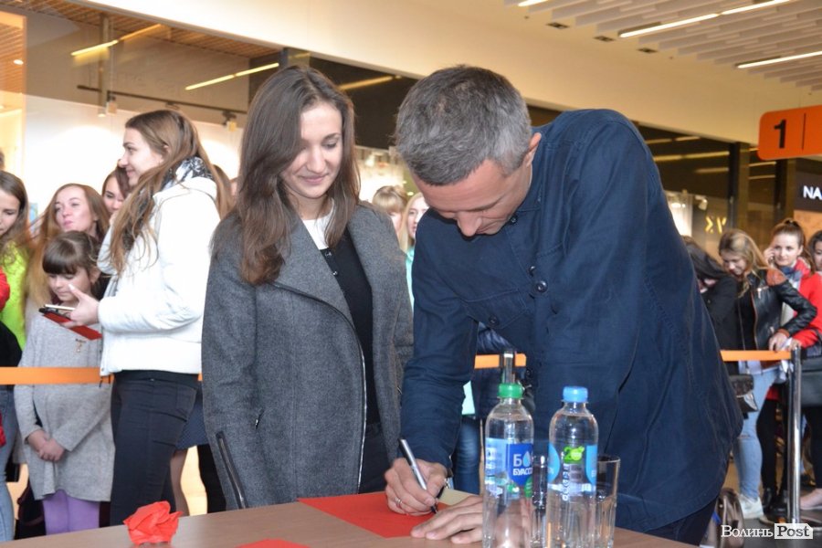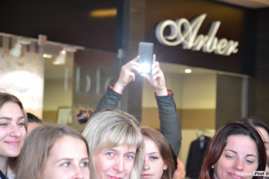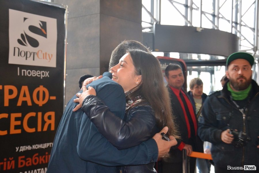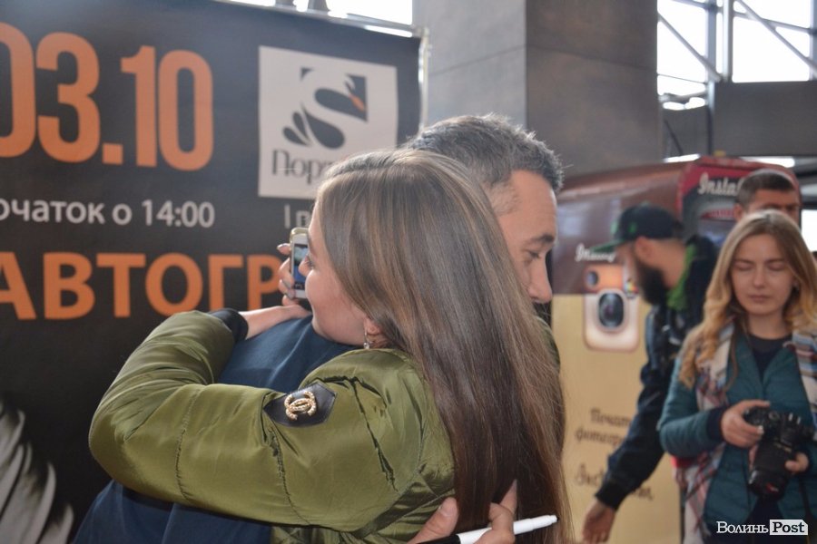 Сергій Бабкін залюбки писав побажання та дарував автографи, фотографувався та обіймав прихильників. До Луцька із ним завітала дружина Сніжана. До слова, із нею теж фотографувалися чимало людей.