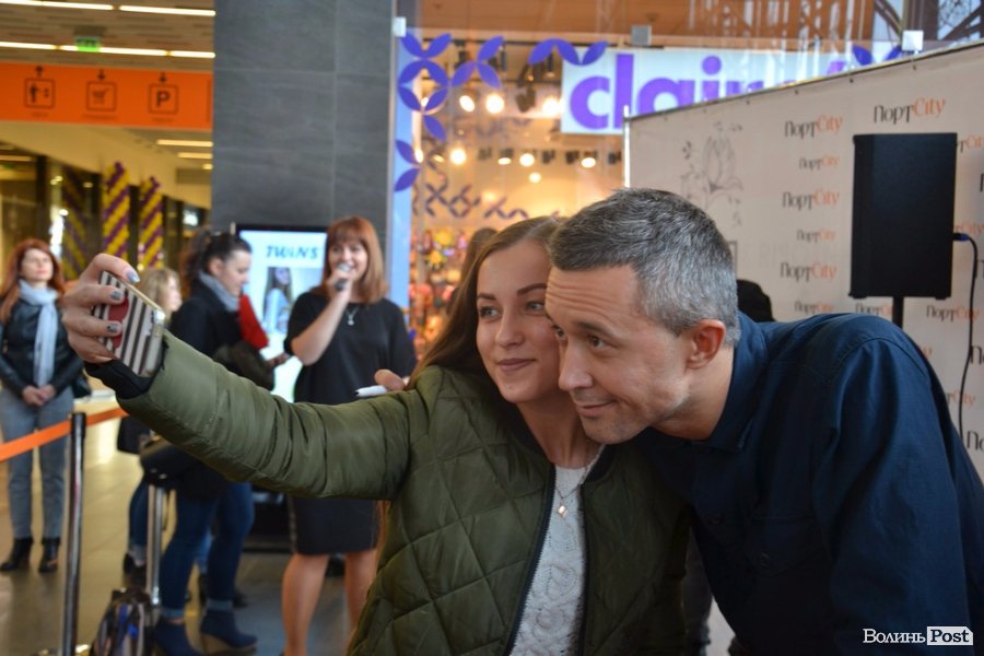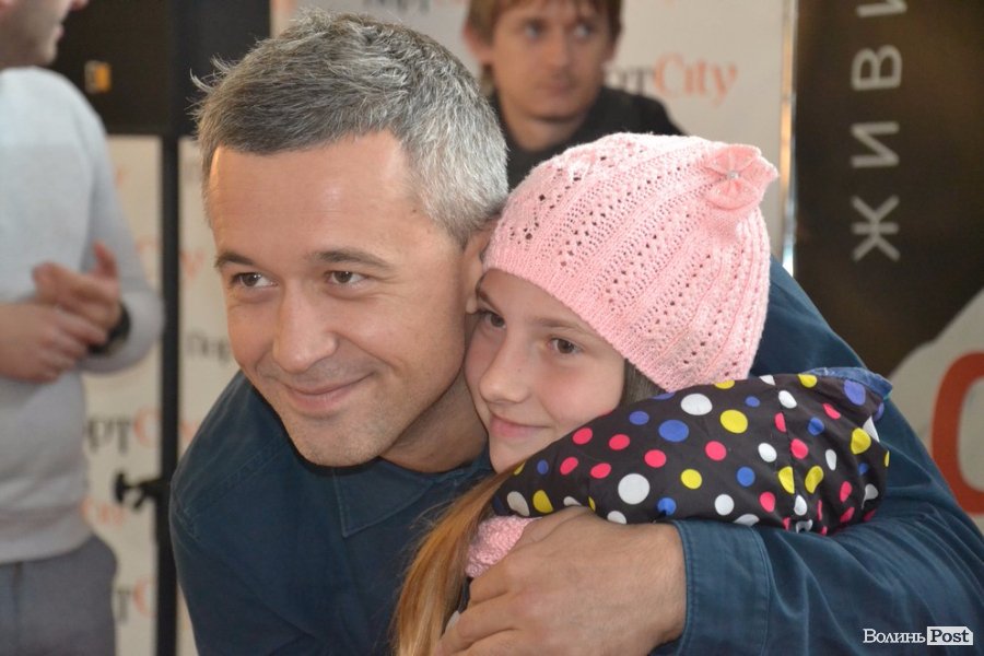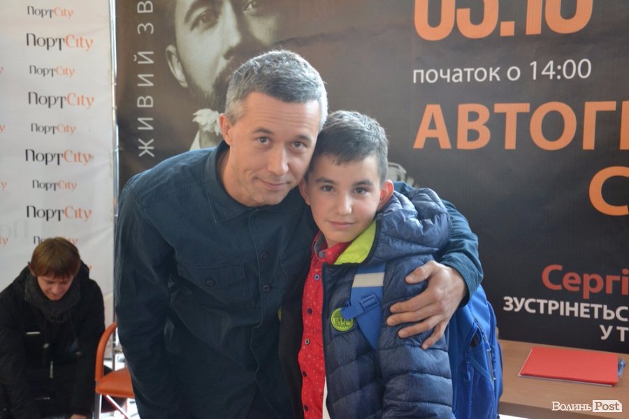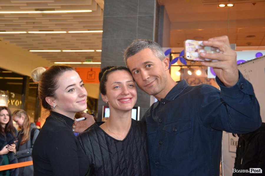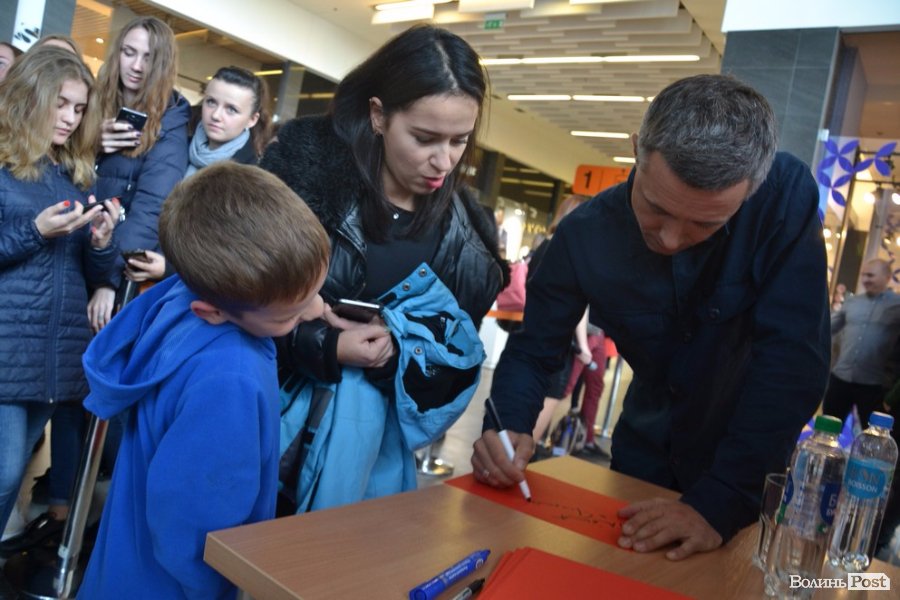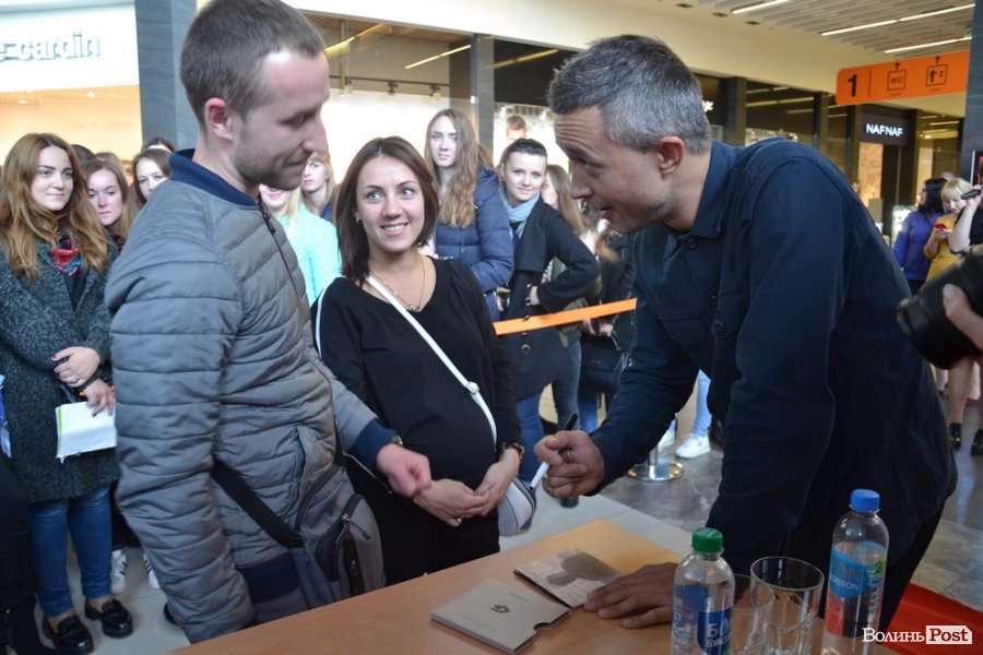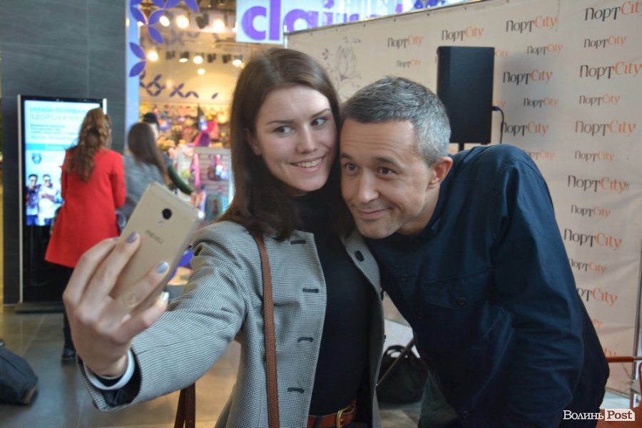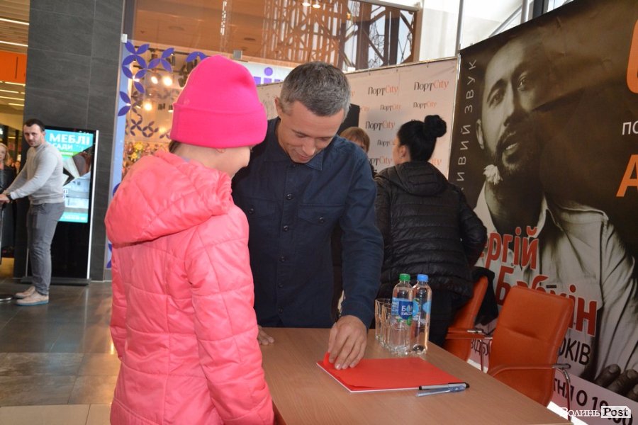 Сергій Бабкін залюбки писав побажання та дарував автографи, фотографувався та обіймав прихильників. До Луцька із ним завітала дружина Сніжана. До слова, із нею теж фотографувалися чимало людей.