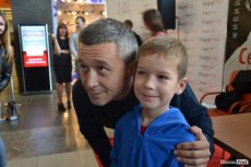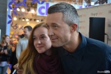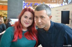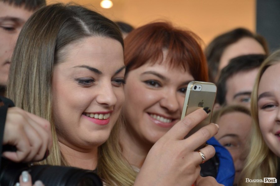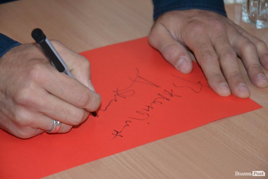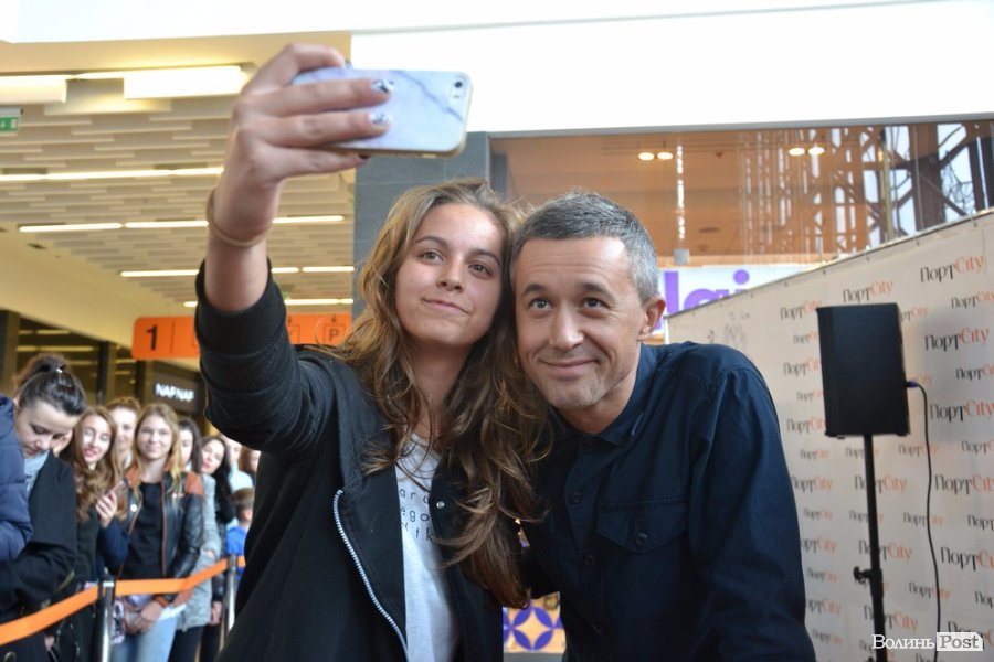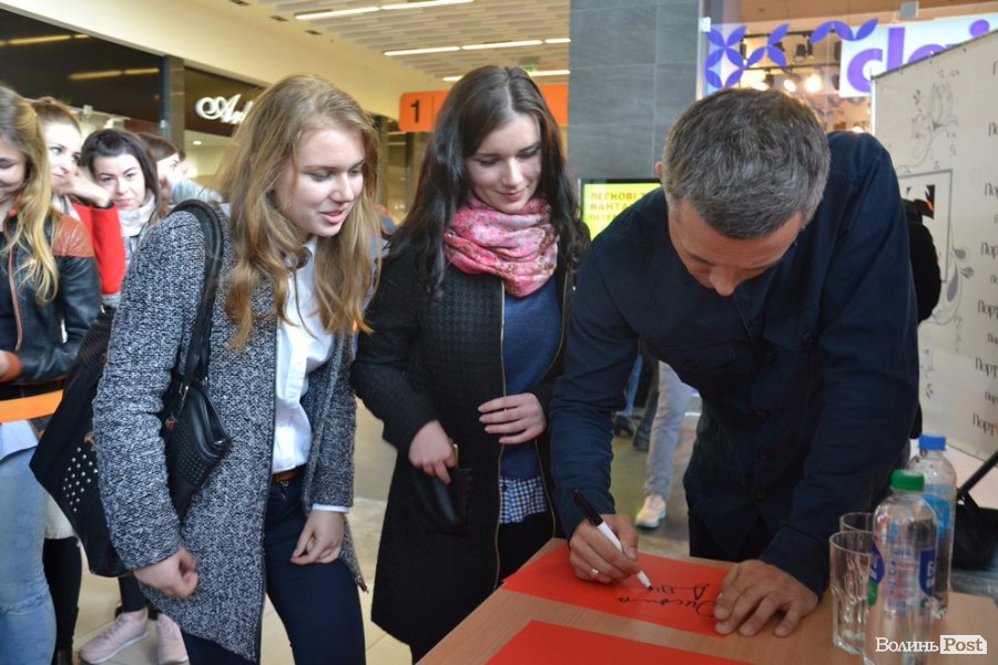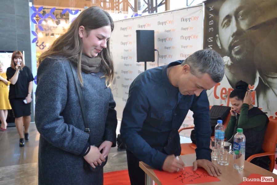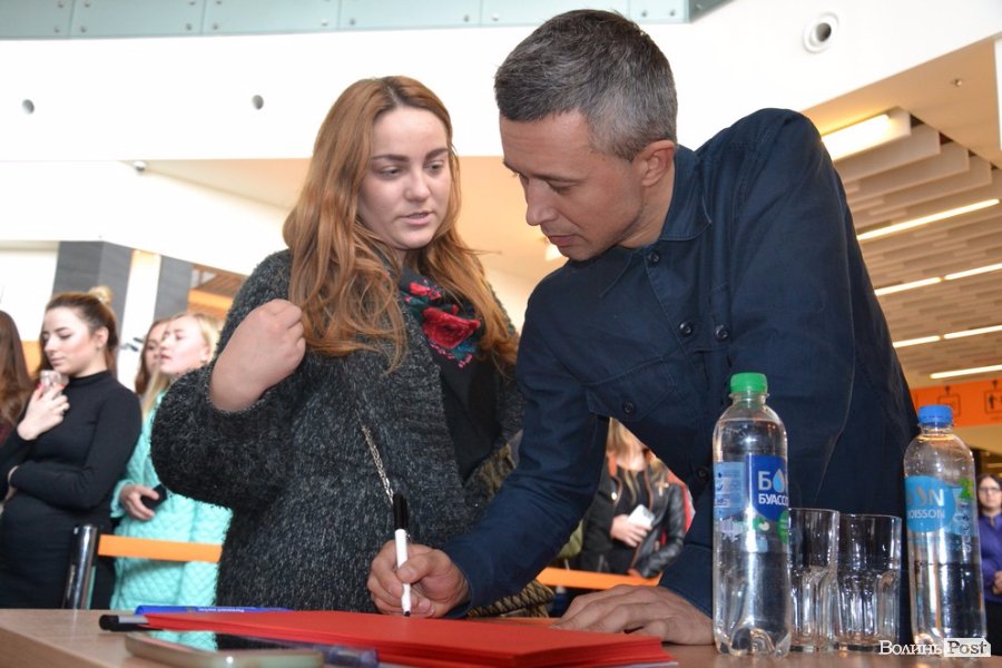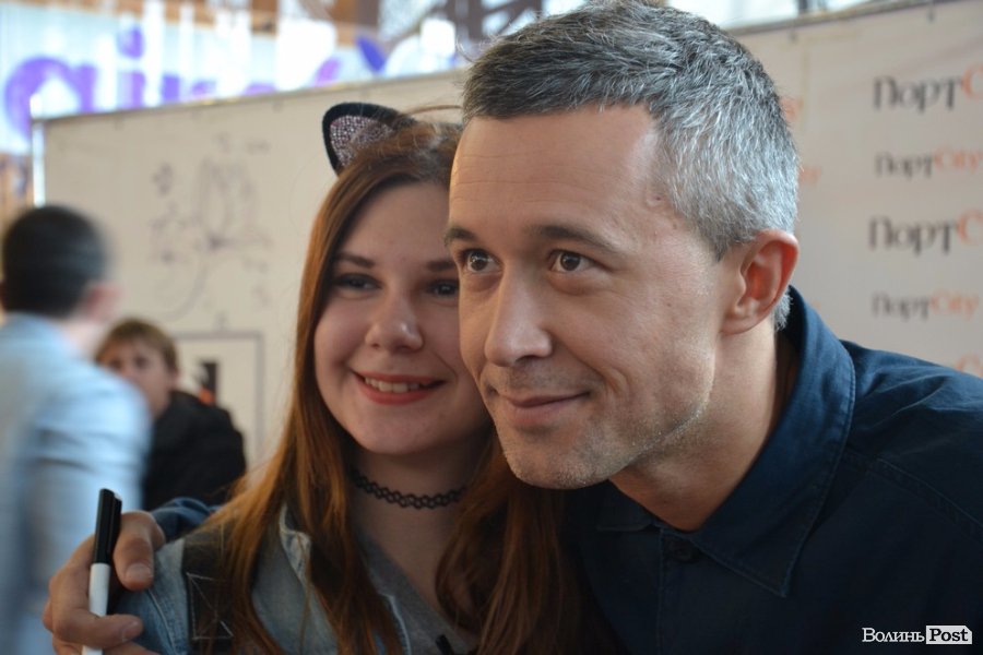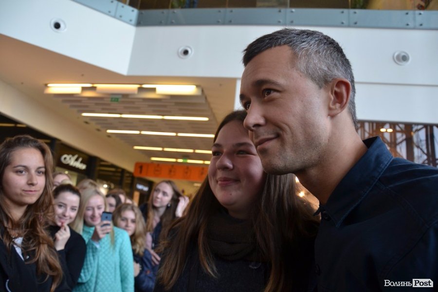 Сергій Бабкін залюбки писав побажання та дарував автографи, фотографувався та обіймав прихильників. До Луцька із ним завітала дружина Сніжана. До слова, із нею теж фотографувалися чимало людей.