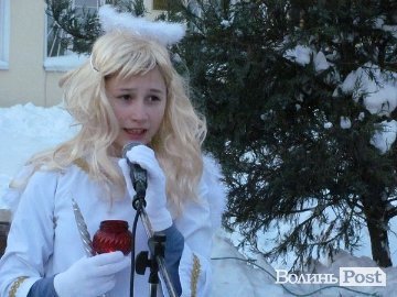 У Луцьку біля пам'ятника святому Миколаю діти співали пісні і вітали перехожих зі святом.