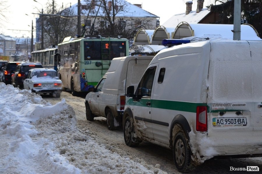 Близько півтори години десятки тролейбусів, маршруток та автомобілів простояли у заторі в центрі Луцька через водія автомобіля «Мазда», який невдало припаркував машину.