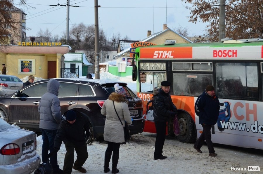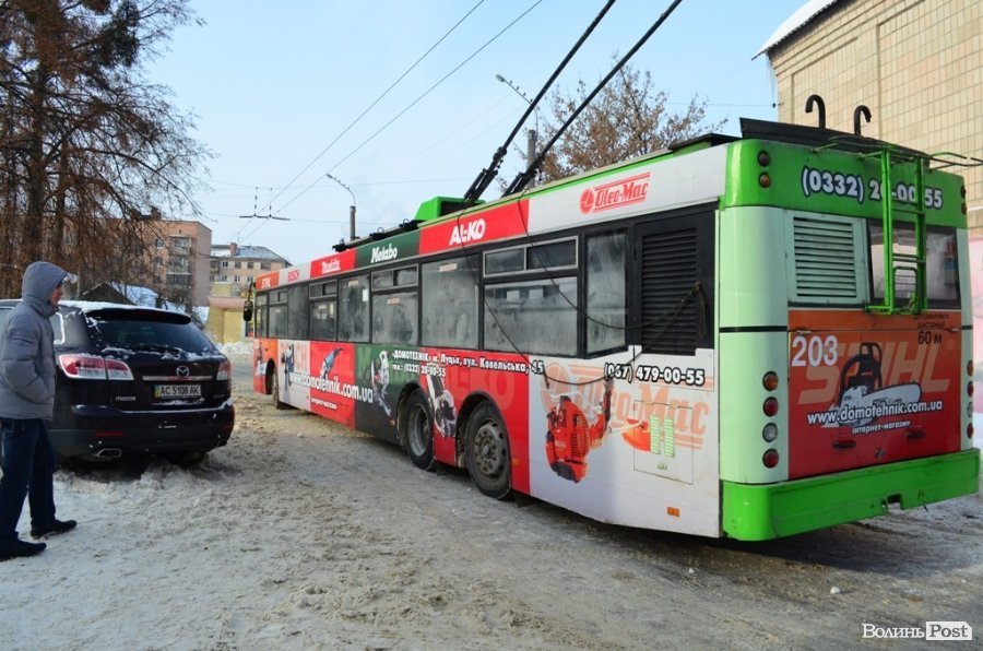 У пастку 19 грудня потрапив водій тролейбуса, якому важко було повернути на повороті на виїзді з вулиці Богдана Хмельницького, не зачепивши при цьому припарковану «Мазду».