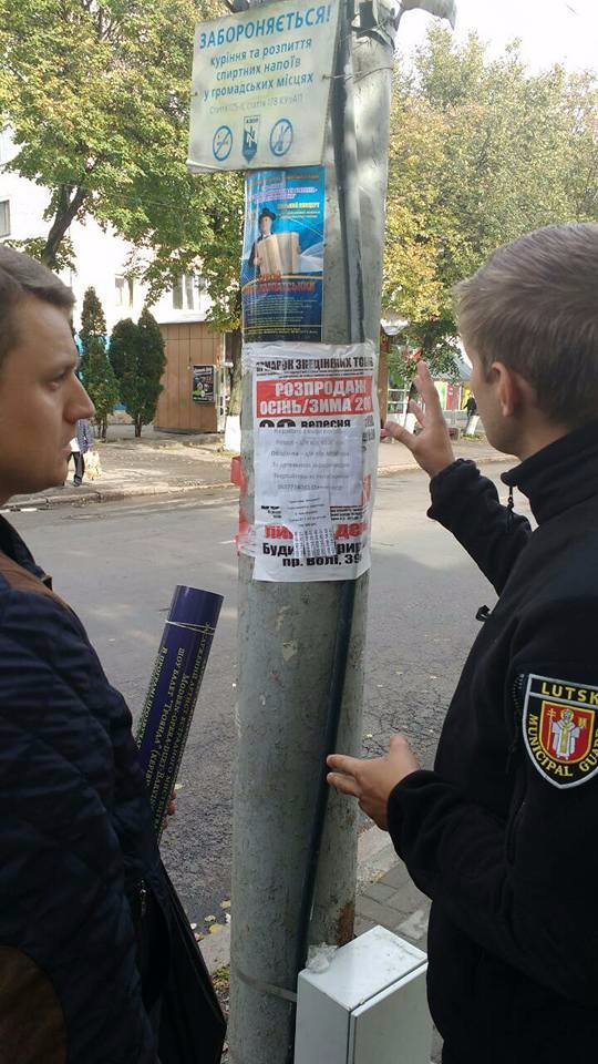 У процесі патрулювання міста група швидкого реагування виявила розклейку рекламних плакатів на електроопорі на проспекті Волі, 36 поблизу Луцького педагогічного коледжу, що є порушенням ст.152 КУпАП та п.п. 2.5.5.1.11.