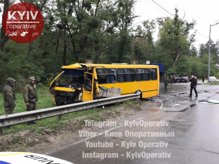 У Вишгородському районі пасажирський автобус сполученням «Димер – Київ» зіткнувся зі службовим автобусом Національної гвардії України, що рухався у колоні.