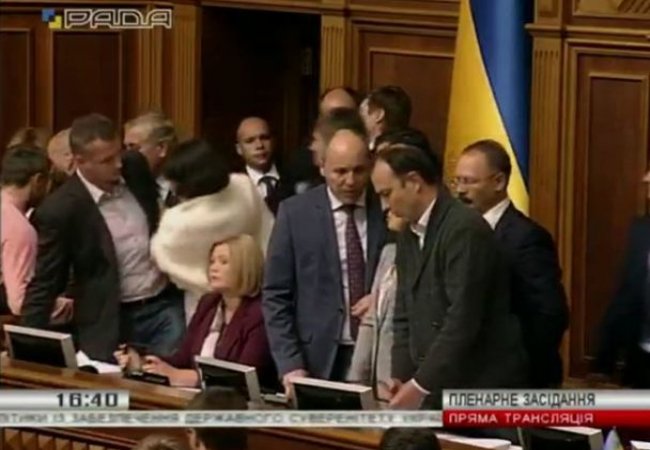 При цьому народні депутати не давали можливості Ірині Геращенко вести засідання. В неї виривали мікрофон, який згодом зламали. При цьому перший віце-спікер закликала "Самопоміч" коректно поводитися у залі Ради.