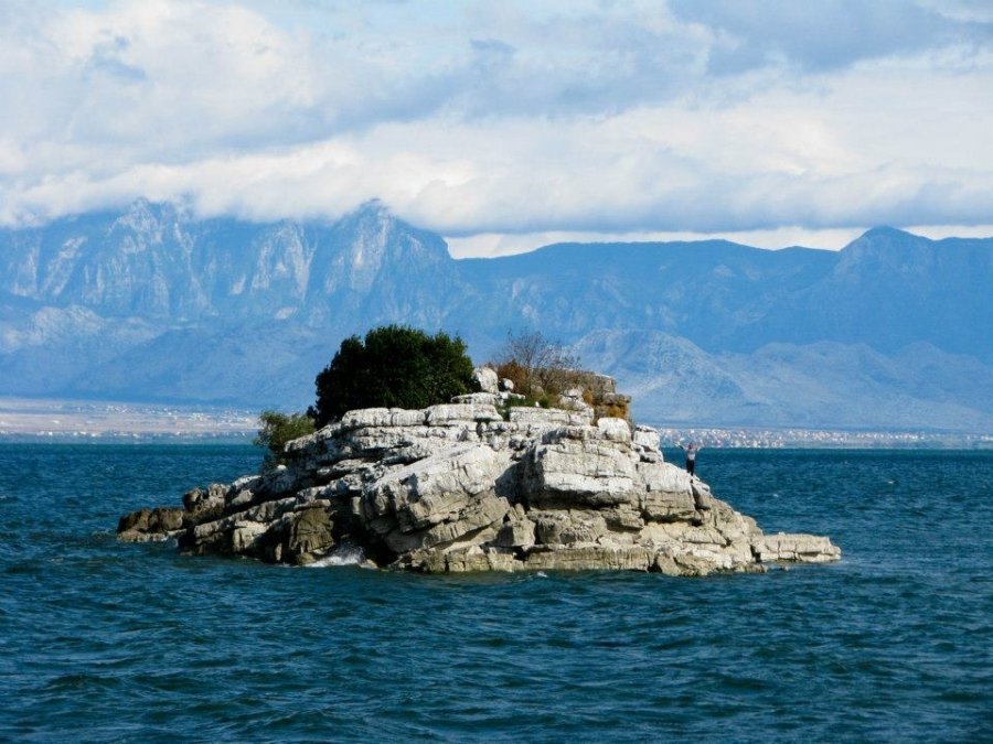 Скадарське озеро. Мабудь, це одне із найромантичніших місць у всій Чорногорії. Озеро дуже велике і розташоване серед гірських хребтів. Воно належить як Чорногорії, так і сусідній Албанії. До речі, саме узбережжя Албанії зображене на фото. По всьому озеру багато ось таких отсровів, на деяких живуть птахи, які лише можуть розмножуватися на цьому озері, тому туди туристів не возять.