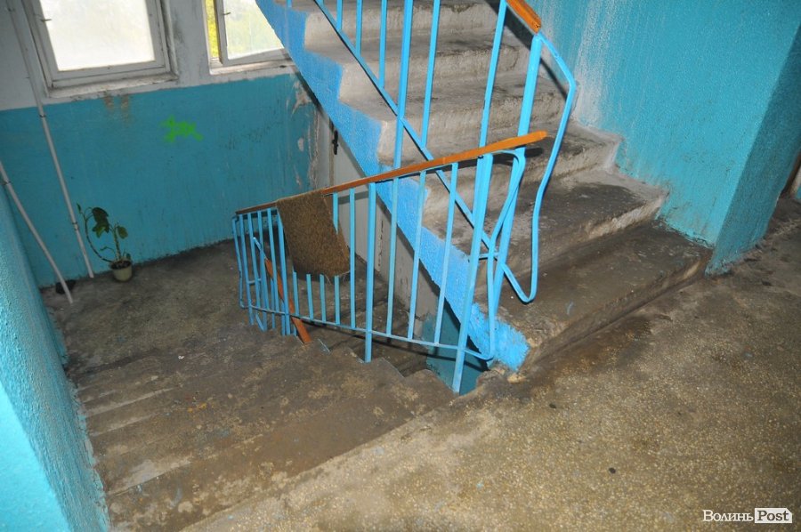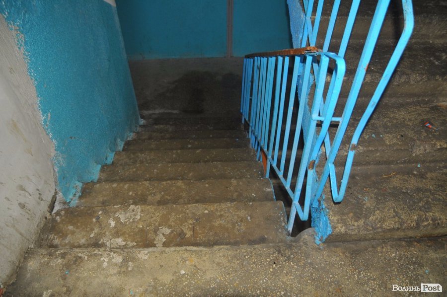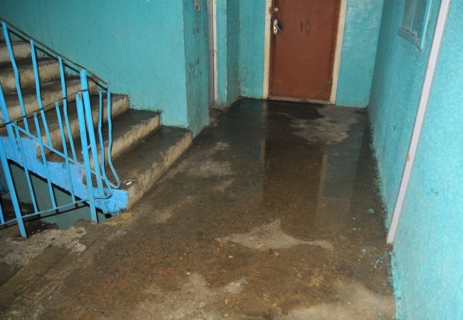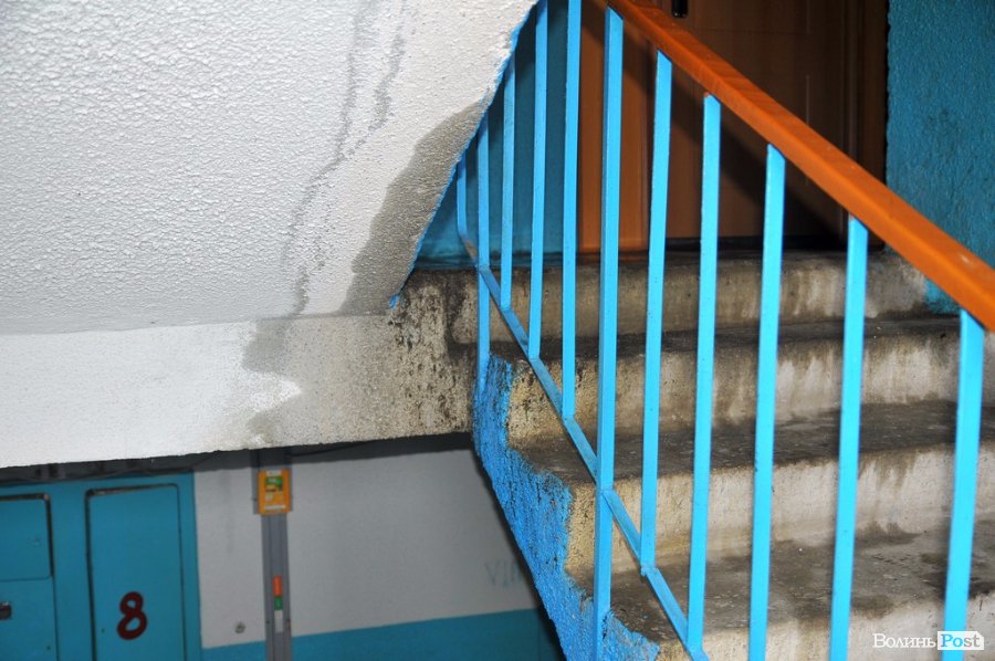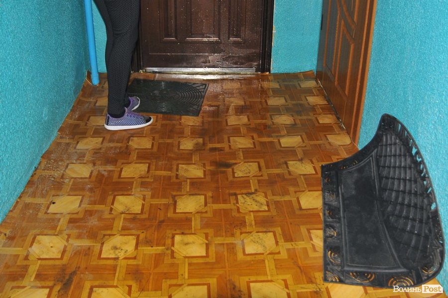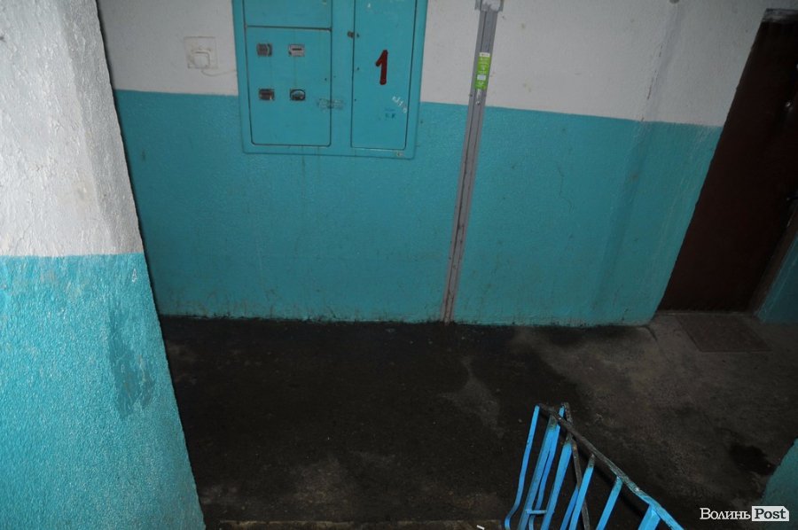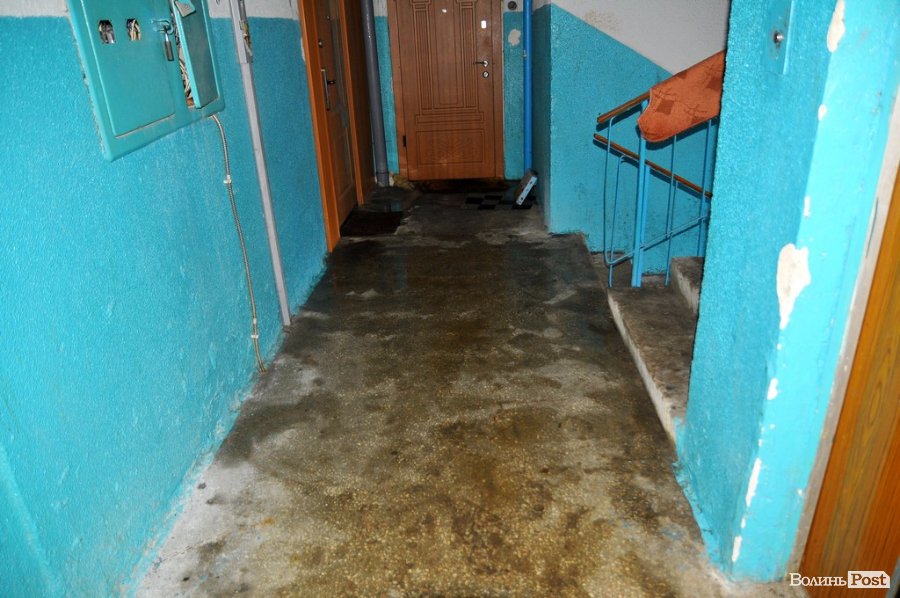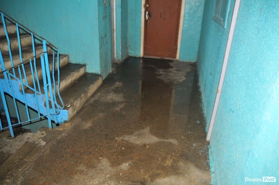 У Луцьку у другому під’їзді дев’ятиповерхівці на вулиці Гордіюк, 45 затопило квартири із 9-го до 4-го поверху, а вода стоїть у коридорах навіть на першому поверсі.