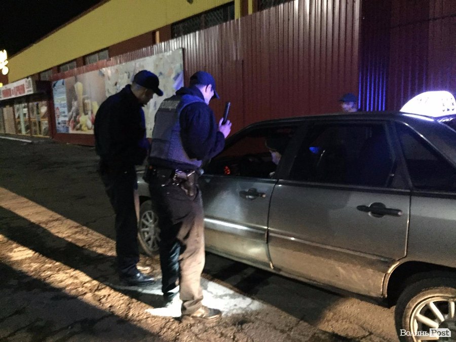 У Луцьку вночі затримали п’яного таксиста. Тест на алкоголь в крові показав 1,21 проміле. В салоні його авто був пасажир.