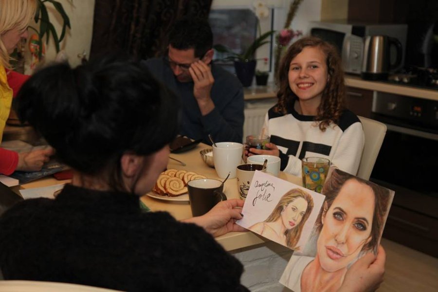 "Крістіні до вподоби малювати кольоровими олівцями. Починала малювати спочатку свою сім’ю, потім багато портретів дарувала друзям, в тому числі і мені урочисто подарила портрет у квітні, перед стендом полеглих волинських бійців на Театральному майдані у Луцьку, серед яких споглядав на нас і її тато – старшина роти в 51-шій механізованій бригаді Сергій Смірнов, котрий на жаль загинув 29 серпня 2014 року у боях під Іловайськом, під час виходу з оточення у так званому «зеленому коридорі»…"