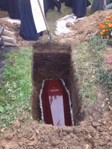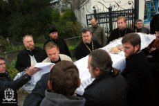 Опісля панахиди у семінарському храмі, труну з тілом спочилого протоієрея Петра повезли до заміського кладовища у селі Липини. Там звершили заупокійну літію і тіло пастиря з молитвами віддали землі.