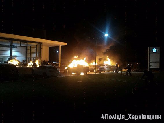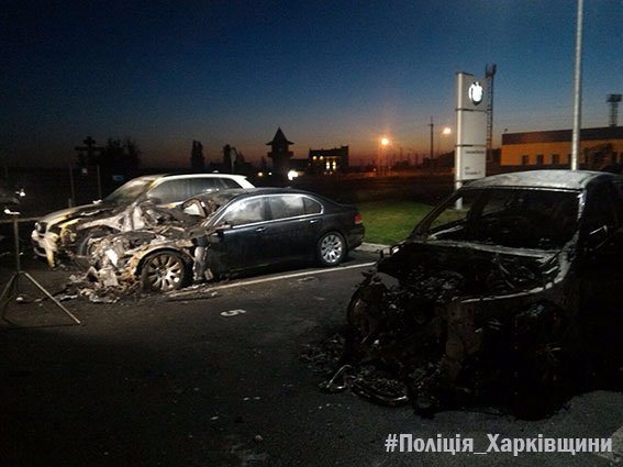 Попередньо встановлено, що до автосалону під’їхав невстановлений автомобіль, з якого вийшли троє чоловіків. Вони розклали на автомобілі пакети та підпалили їх.