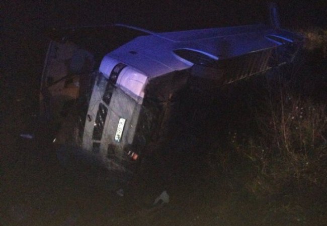 За словами очевидців, автобус стало заносити на повороті і він перекинувся на бік. Удар прийшовся на лобове скло та передню частину автобуса.