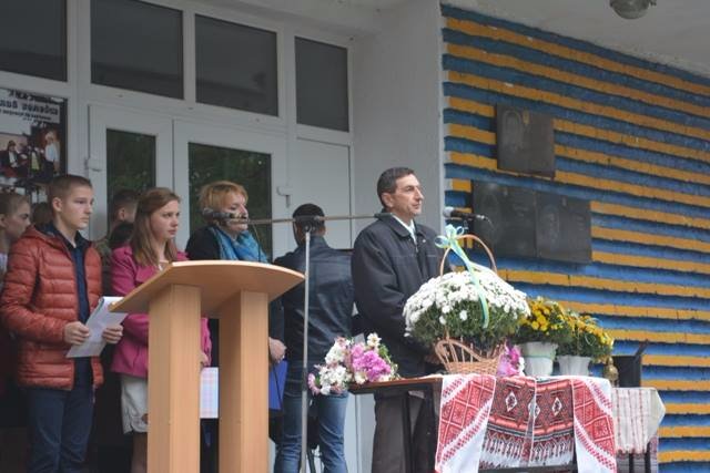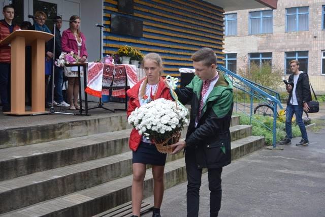 Студенти й учні коледжу, а також всі присутні, поклали квіти до пам’ятника загиблим в зоні АТО та до пам’ятних дошок на фасаді приміщення коледжу.