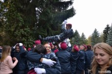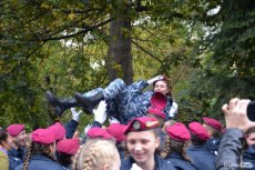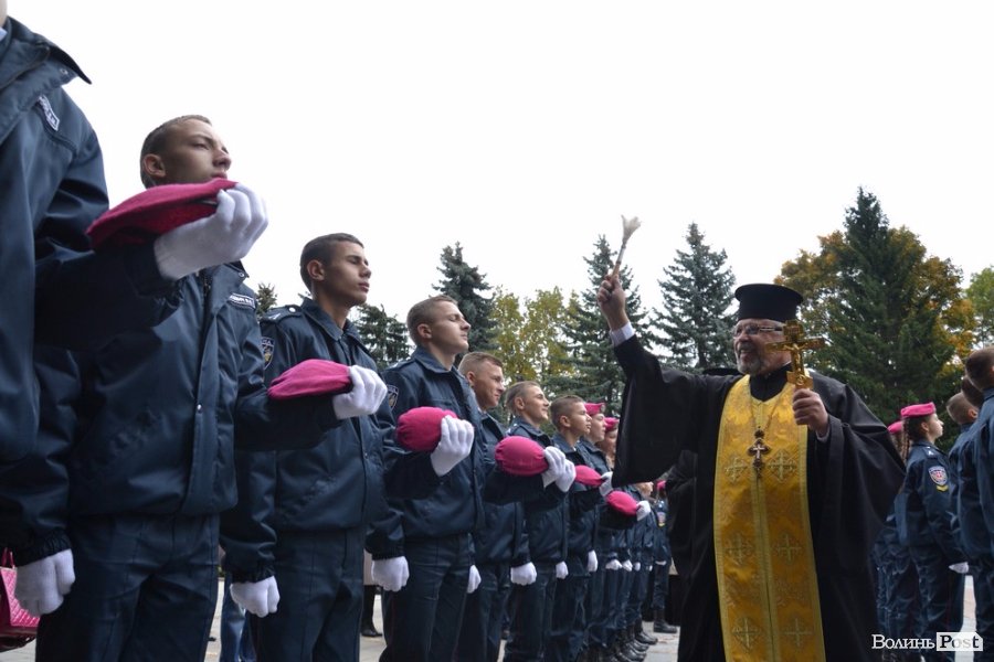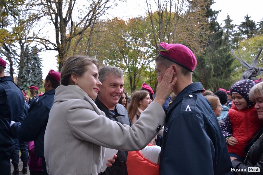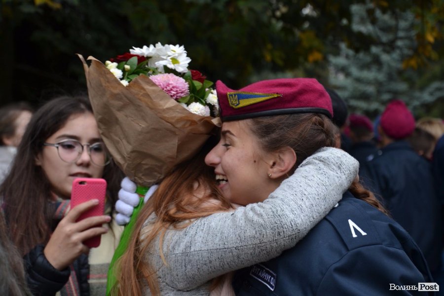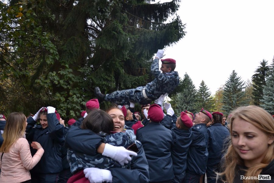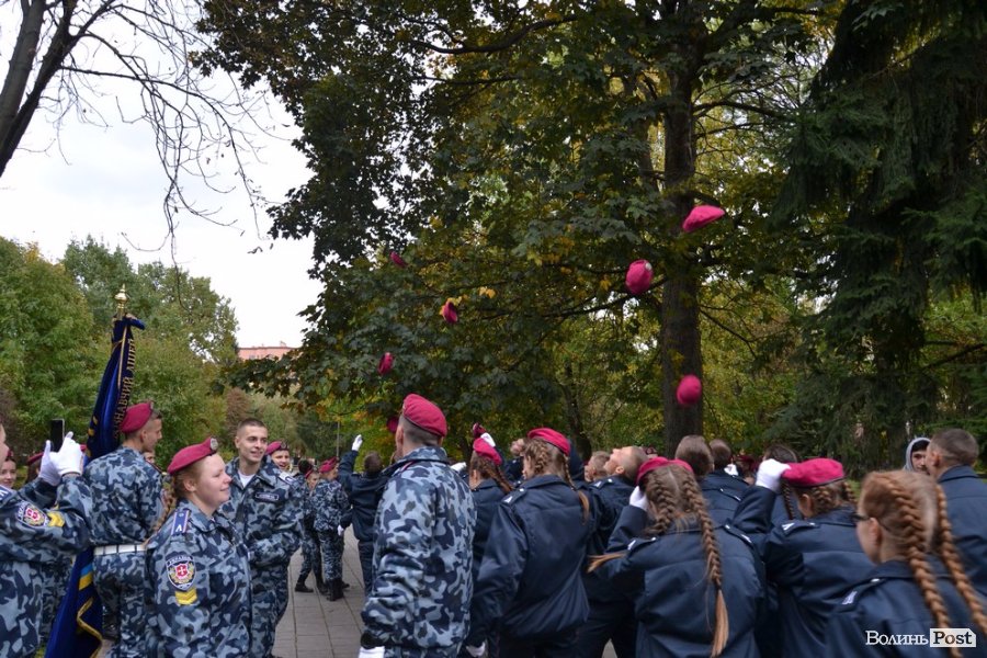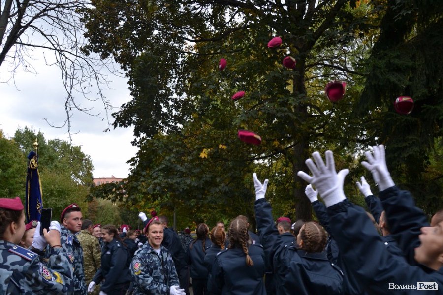 Вже повноправних ліцеїстів поблагословили, а опісля і кропили священнослужителі. Далі ліцеїсти разом із колегами зі старшого курсу урочисто промарширували площею. Після цього на юних правознавців чекали вітання від колег по ліцею: десятки червоних беретів злетіли у повітря. Ліцеїстів підкидали, дарували квіти та обіймали друзі та рідні – тепер вони повноправні студенти Луцького правознавчого ліцею.