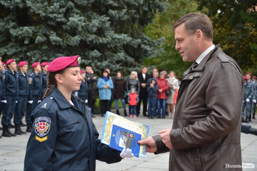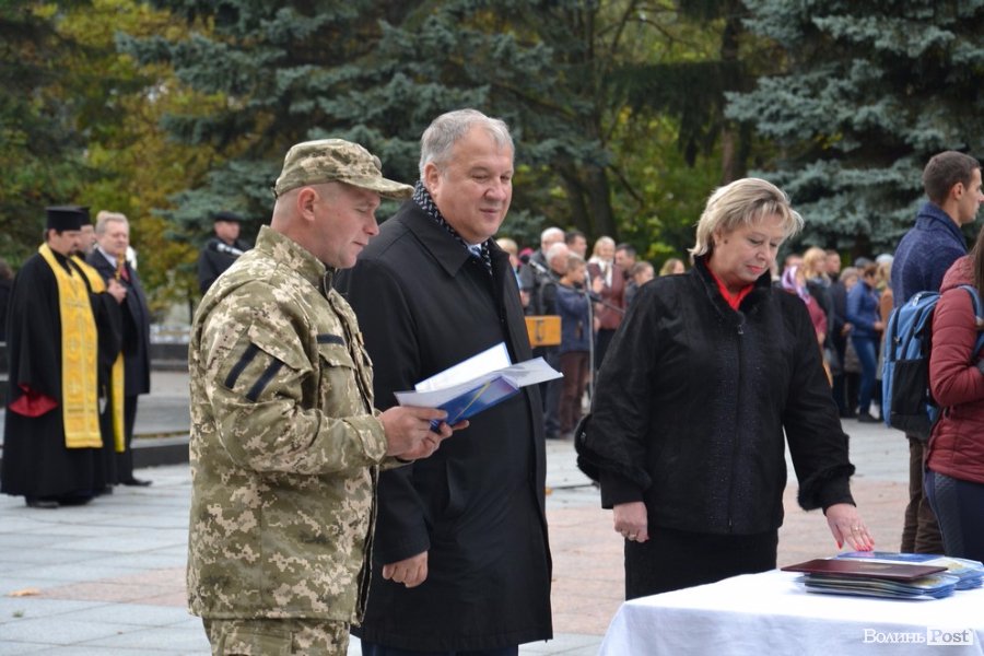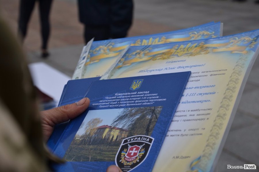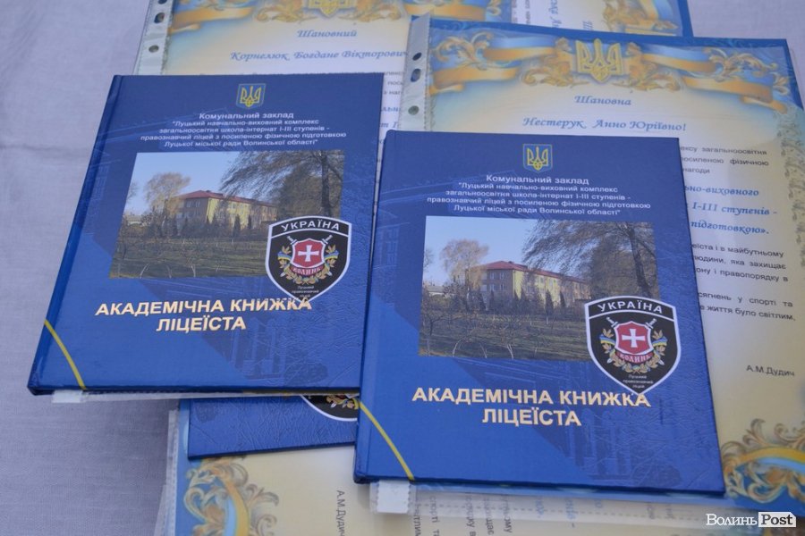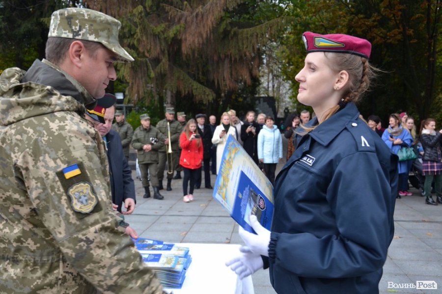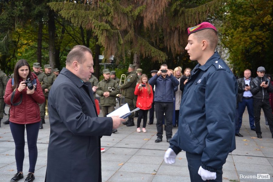 Опісля привітань від посадовців, випускників ліцею та батьків перейшли до найвідповідальнішої частини урочистості – прийняття присяги та вручення ліцеїста. Урочисто її зачитував учень 10-а класу Павло Місіюк, а згодом кожен з новобранців вигукував своє ім’я, засвідчуючи: присягу прийнято. Тоді начальник головного управління Нацполіції у Волинській області Петро Шпига, секретар міської ради Григорій Пустовіт, заступник начальника управління освіти Тетяна Силка, заступника начальника міського військового комісаріату Олександр Фурман та сам керівник закладу Анатолій Дудич вручили вітальні листівки та академічні книжки ліцеїста.