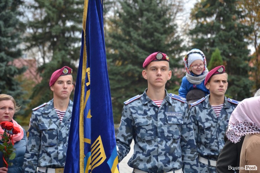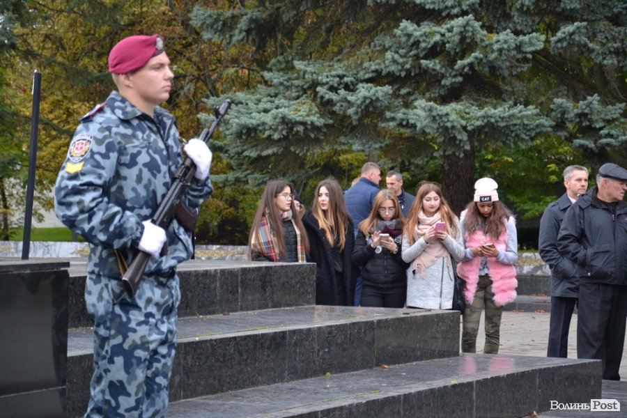 Хвилиною мовчання вшанували тих, хто загинув у боротьбі за права і свободи людини та конституційні засади демократії під час Революції Гідності та захищаючи суверенітет України в АТО. Тож до стели загиблим під час Другої світової війни, пам’ятника Василю Мойсею та волинським Героям Небесної Сотні поклали квіти кращі ліцеїсти.