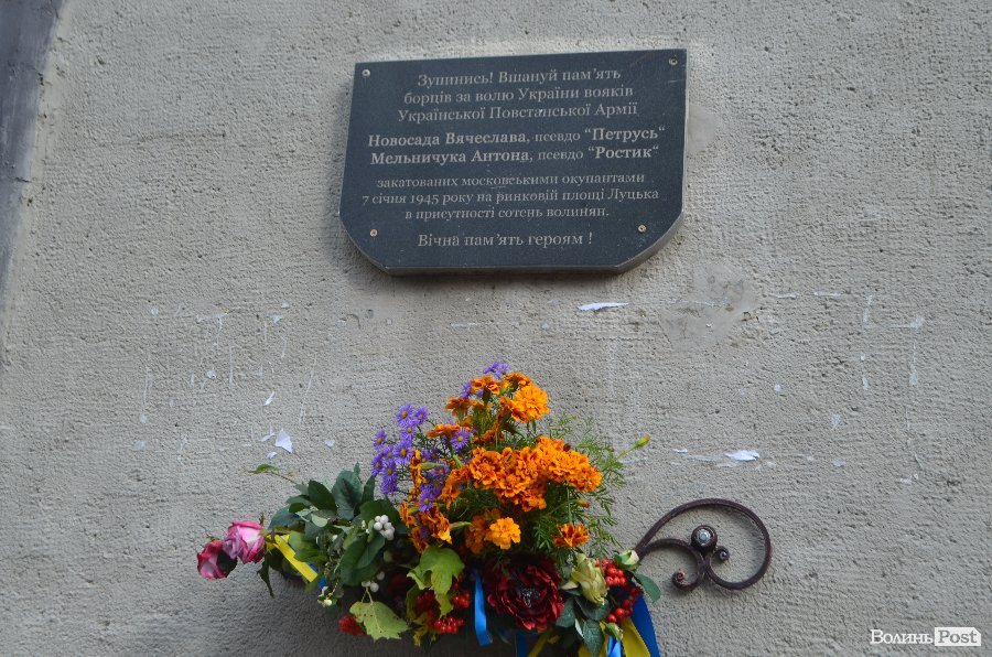 У Луцьку вшанували пам’ять двох молодих волинських упівців - Антона Мельничука ( псевдо «Ростик») та В’ячеслава Новосада (псевдо «Петрусь»). У 1945-му році їх публічно стратили кати НКВС на ринковій площі у Луцьку.