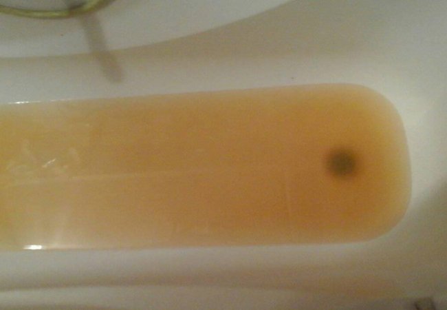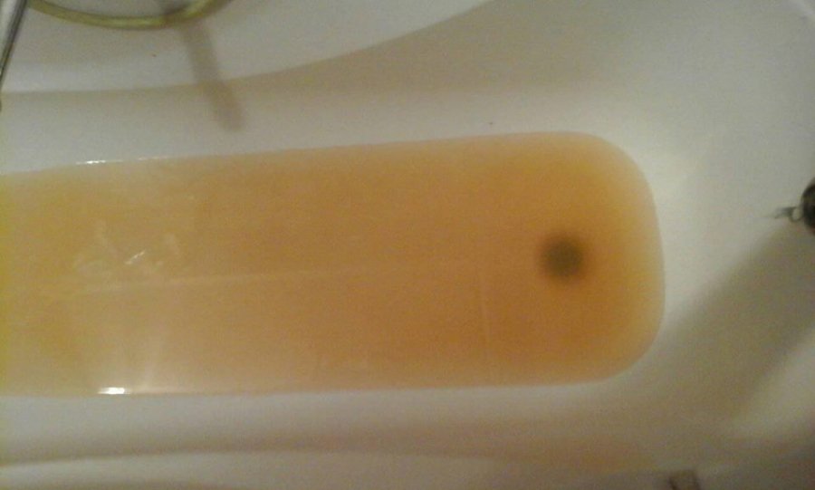 "Тепер в нас на Брищах не тільки чиста вода біжить з крана а сьогодні і фанта побігла", - коментує автор фото з "ржавою" водою.