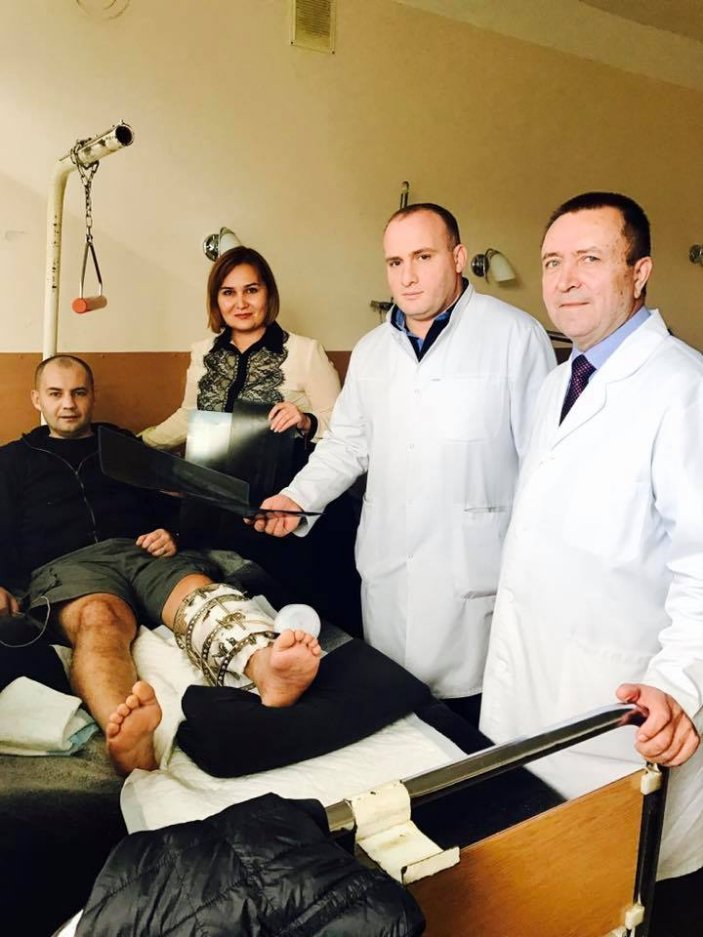 "Медичною мовою Євтушику проведена фістулосеквестнекротомія лівої гомілки по типу сегментарноі резекціі великої гомілковоі кістки та трилокальний черезкістковий остеосинтез. Низький уклін хірургам Миколі Грицаю і Генадію Колову, що взялися за нашого Юру у такому стані...що намагаються врятувати скалічену ногу...