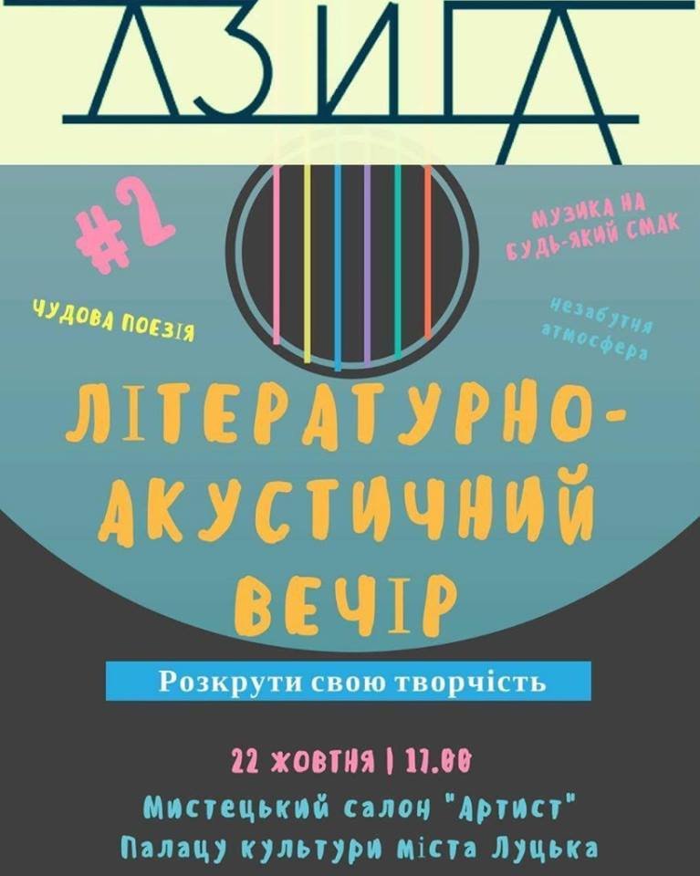 Захід відбудеться 22 жовтня о 17:00 у приміщенні мистецького салону "Артист" Палацу культури міста Луцька, що знаходиться за адресою вул. Богдана Хмельницького, 1. Вхід вільний.
