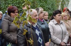 Перед тим, як висадити іменні деревця, присутні помолилися за душі загиблих. Вшанували пам'ять бійців і хвилиною мовчання.