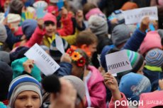 А потім школярі подарували долоньки старшокласникам, вчителям, батькам та гостям флешмобу, котрі прийшли подивитися на це дійство.