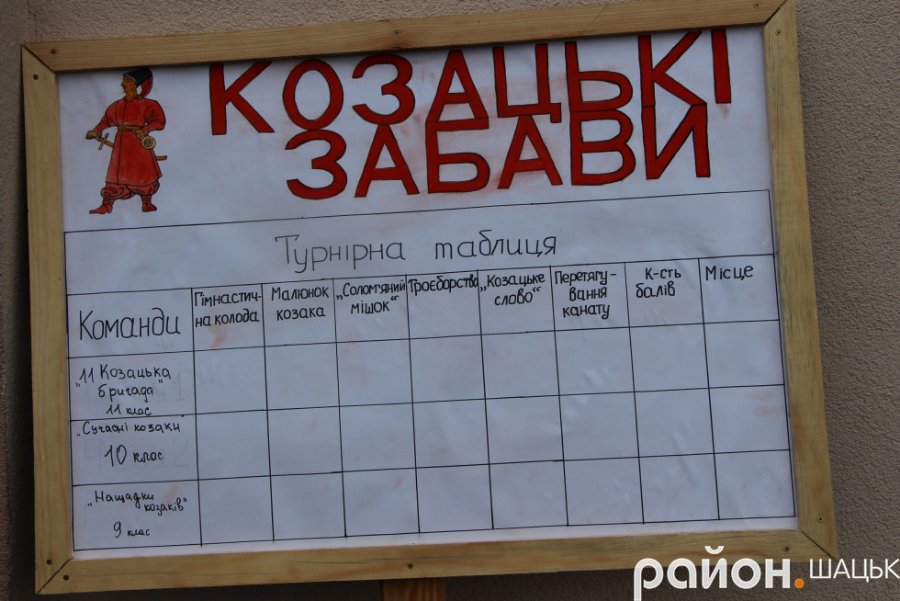 Потім на шкільному стадіоні відбулися спортивні козацькі забави між хлопцями 9, 10 та 11 класів. Суддями спортивних забав були гості - демобілізовані учасники АТО Ярослав Любиш та Юрій Пех, а також голова районної організації ветеранів Афганістану Володимир Носуліч.