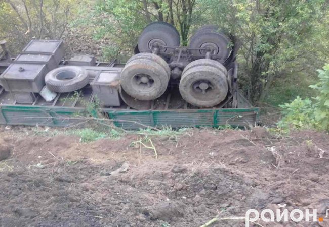 Між населеними пунктами Смолигів і Торчин Луцького району трапилася ДТП – перекинулася вантажівка.