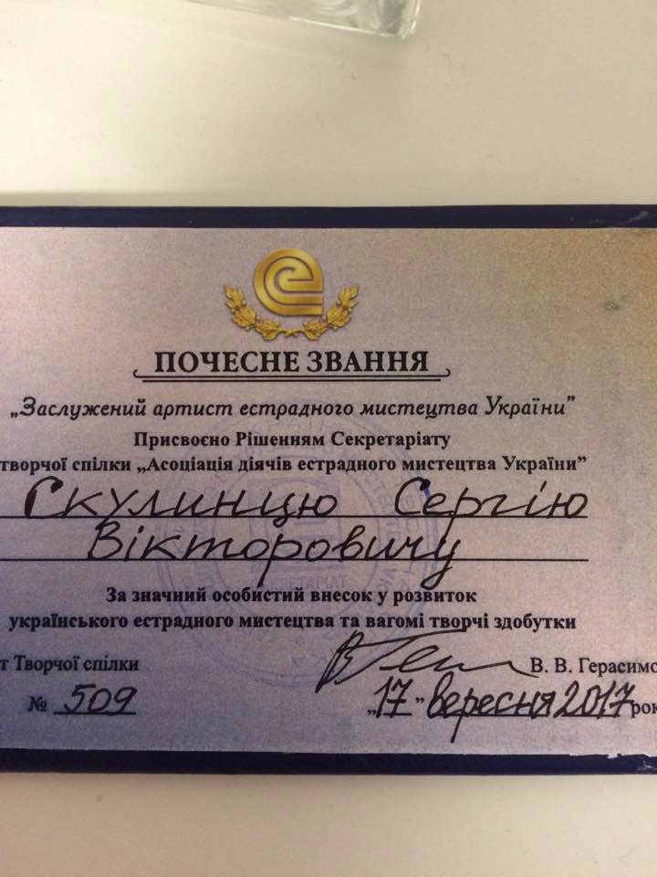 Луцький музикант, продюсер, ведучий культурних заходів Сергій Скулинець став заслуженим артистом естрадного мистецтва України.
