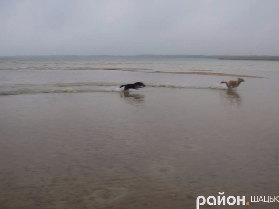 Їх тут багато, їхні господарі - охоронці баз відпочинку. Собаки полюбляють бігати по озерному мілководдю і бавитися.