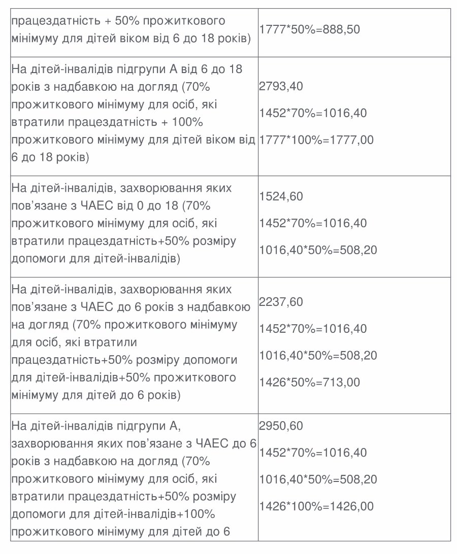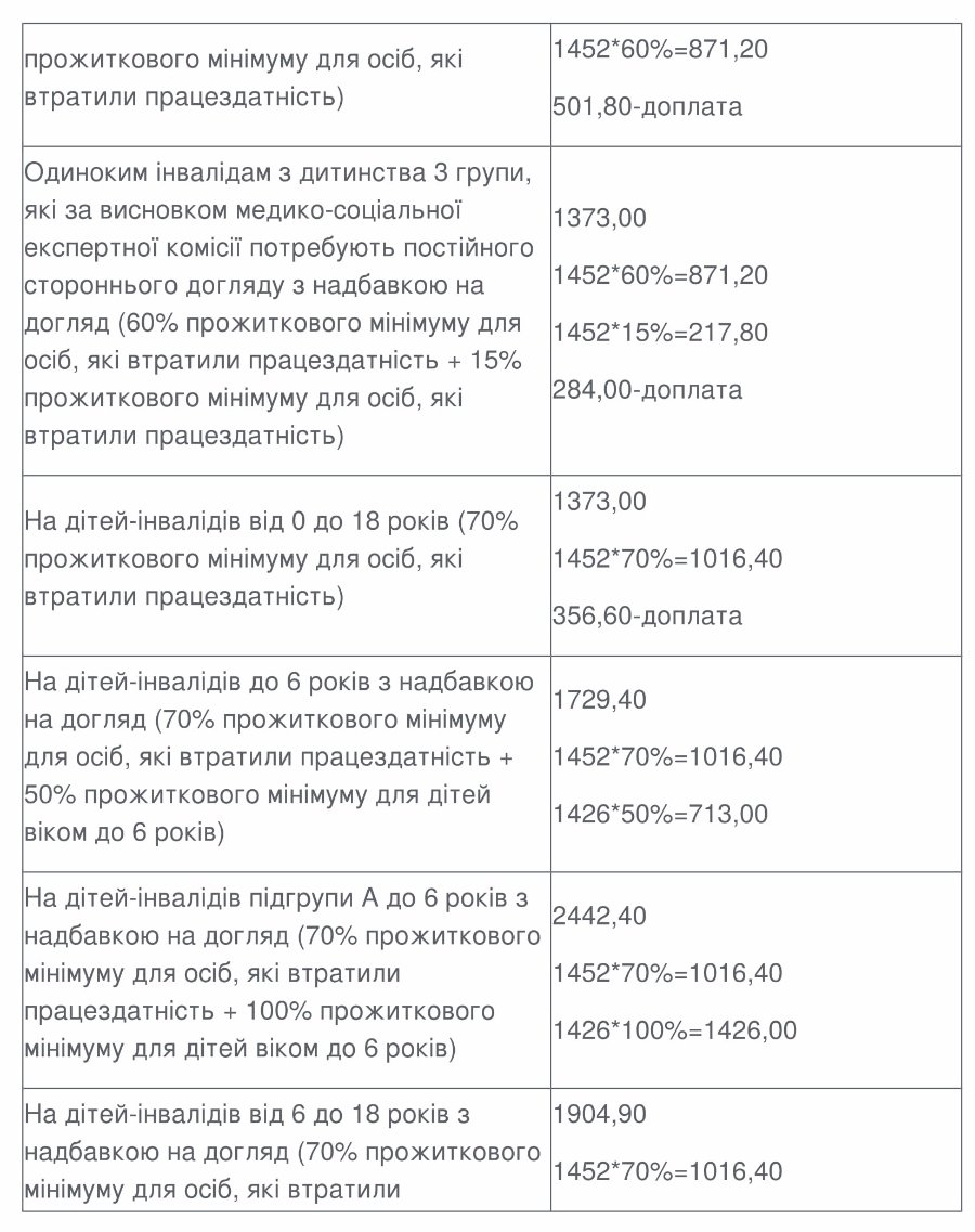 Розміри державної соціальної допомоги: