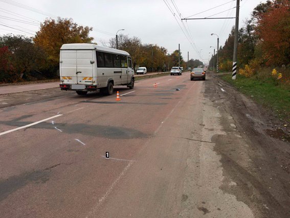 Дівчинка вибігла з-за маршрутного таксі, яке зупинилося для здійснення розвороту у лівій смузі.
