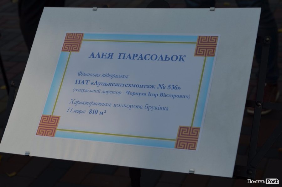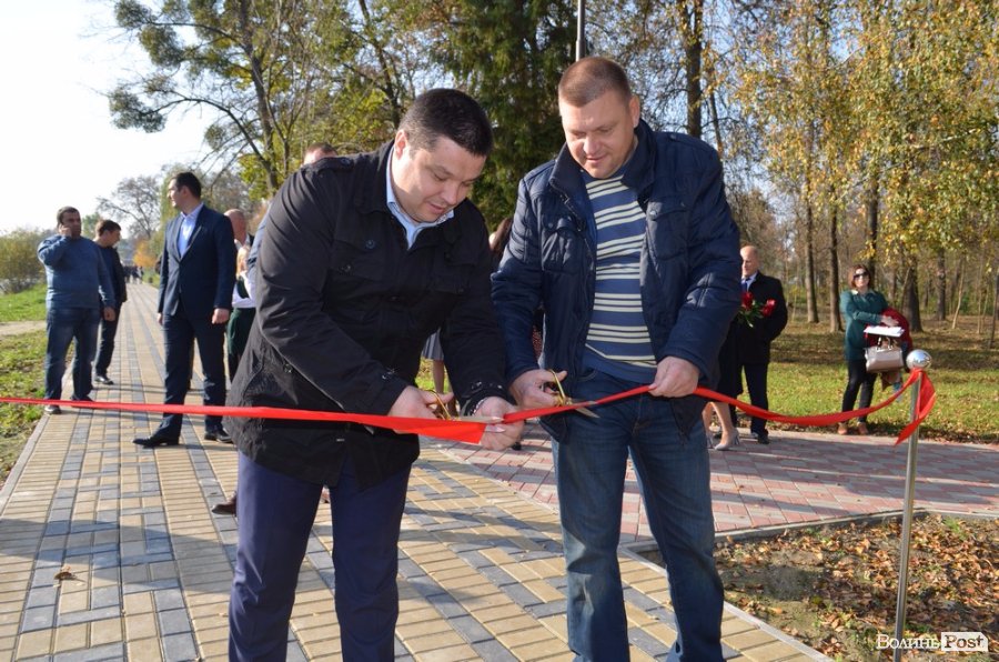 Опісля підприємці, кожен з яких долучився до реконструкції та «опікувався» певною алеєю, разом із посадовцями урочисто перерізали червоні стрічки. На згадку вони отримали скляну фігурку із логотипом Луцька.