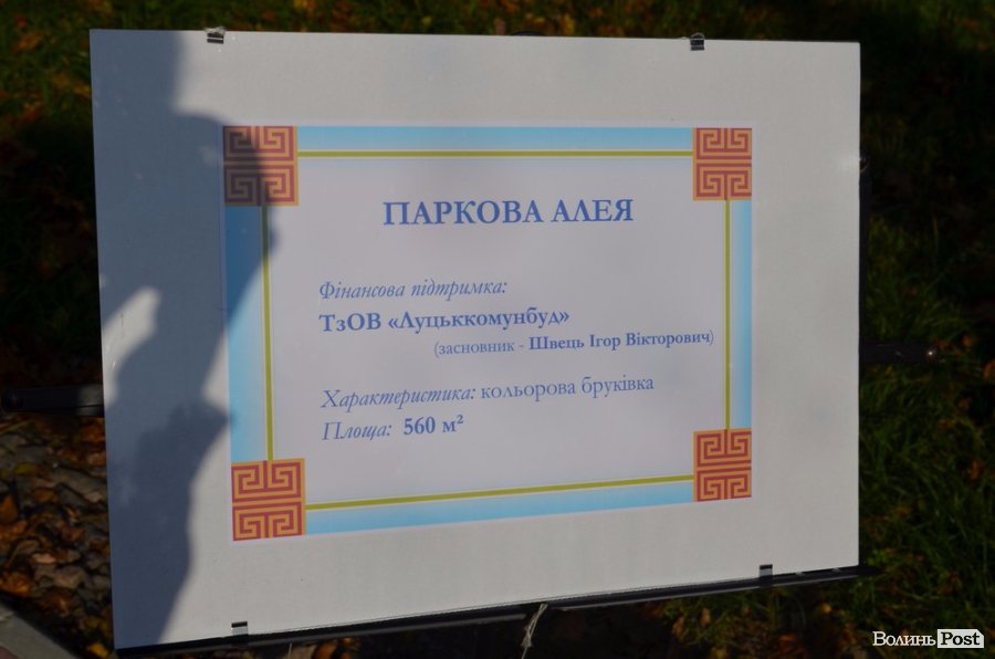 Доріжки для прогулянок вирівняли та виклали новою бруківкою. Оновити та осучаснити парк взялися луцькі бізнесмени, які вклали кошти в реконструкцію покриття.