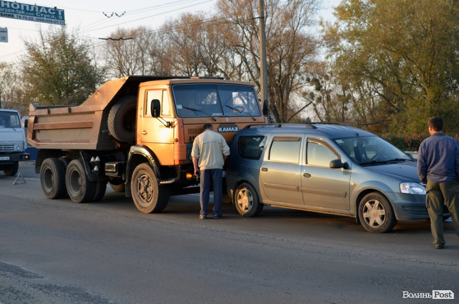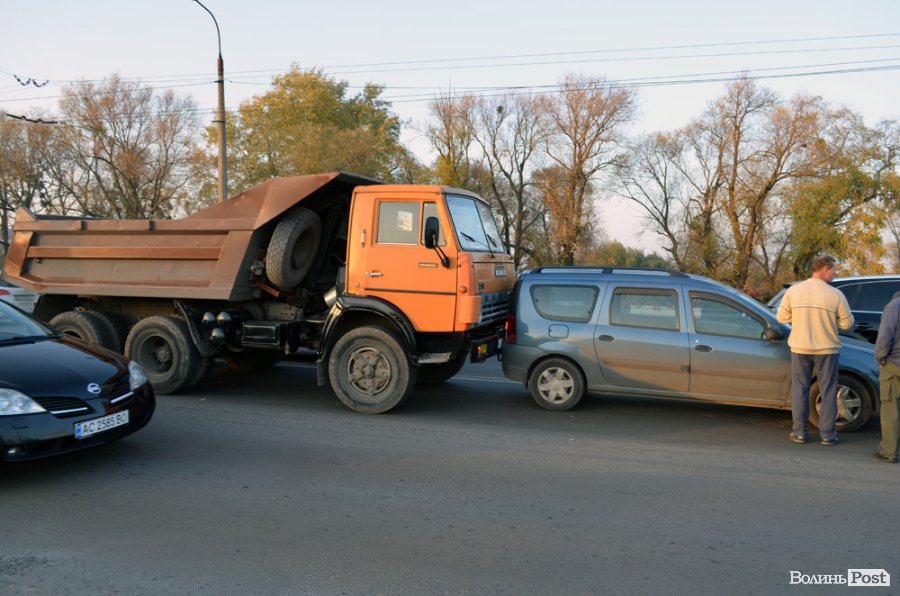 Зіткнення сталося біля повороту з вулиці Ковельської на вулицю Набережну. Фургон та вантажівка пригальмували на червоне світло, проте КАМАЗ не зупинився одразу, а в'їхав у Renault. Щоправда, зіткнення незначне, відтак автомобіль отримав невеликі вм'ятини.
