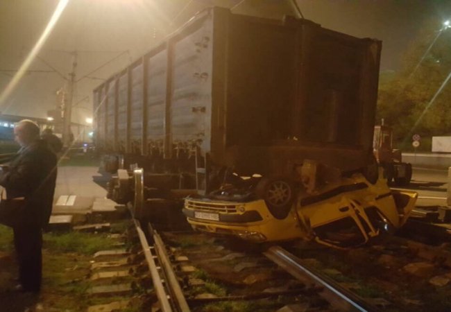 В Одесі вантажний поїзд розчавив легковий автомобіль.