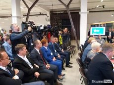 Гройсмана ще чекають в «Modern-Expo». Сюди приїхали заступник голови ОДА Сергій Кошарук, депутати облради Валерій Діброва, Роман Микитюк, керівник обласного центру зайнятості Роман Романюк, очільник лісників Олександр Кватирко, ректори СНУ та ЛНТУ Ігор Коцан і Петро Савчук відповідно, керівник будівельної компанії "ЛДБК" Руслан Вайман, очільники ПАТ "Луцьксантехмонтах №536" Віктор та Ігор Чорнухи.