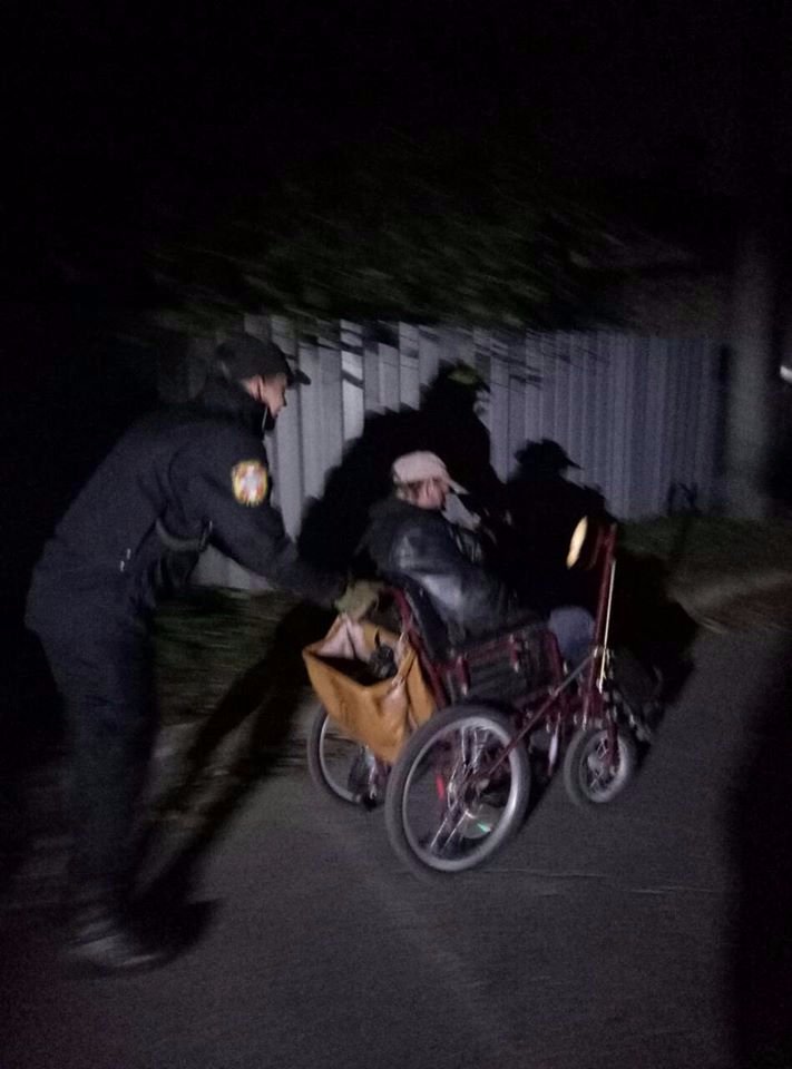 Там чоловік першої групи інвалідності на візку їздив проїжджою частиною дороги. Чоловік перебував у стані сильного алкогольного сп'яніння, не міг назвати не те, що адреси проживання, а й власного імені. Ліва шина візка була проколота. Спроба накачати виявилася невдалою.