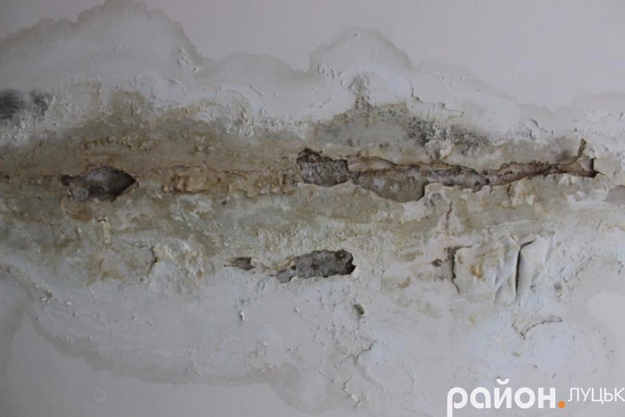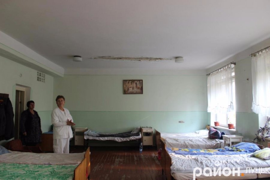 Стеля та стіни в кабінетах працівників – всі в слідах від дощу. З деяких палат довелося просто «відселяти» пацієнтів, бо перебувати там шкідливо для здоров’я.