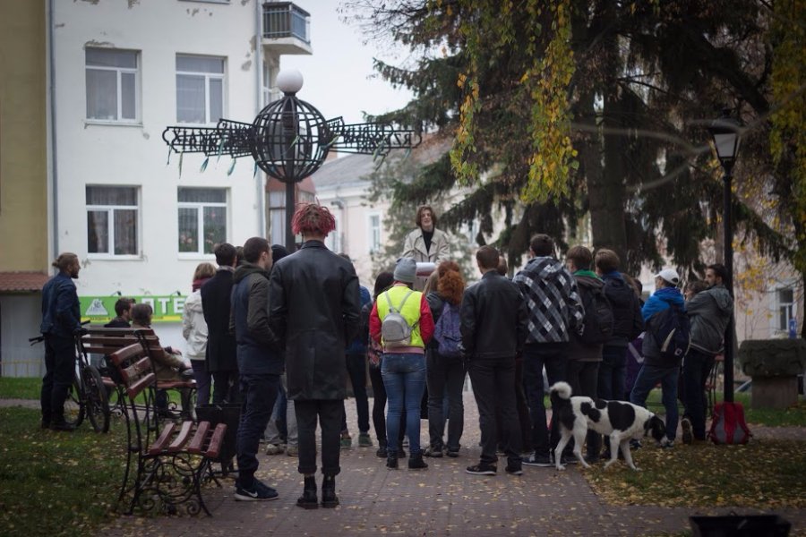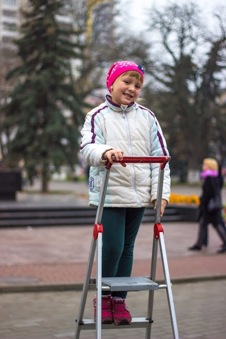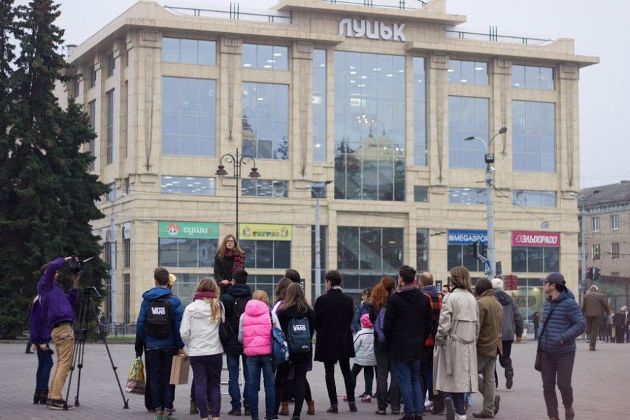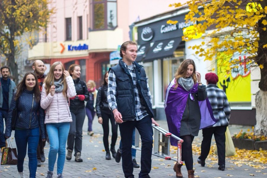 Після Театрального майдану дійство переміщалось по вулиці Лесі Українки. Вилазити на драбину, знімати звичну маску, заявляти про себе можна було на кожній локації і не важливо, скільки тобі років, школяр ти чи актор театру.