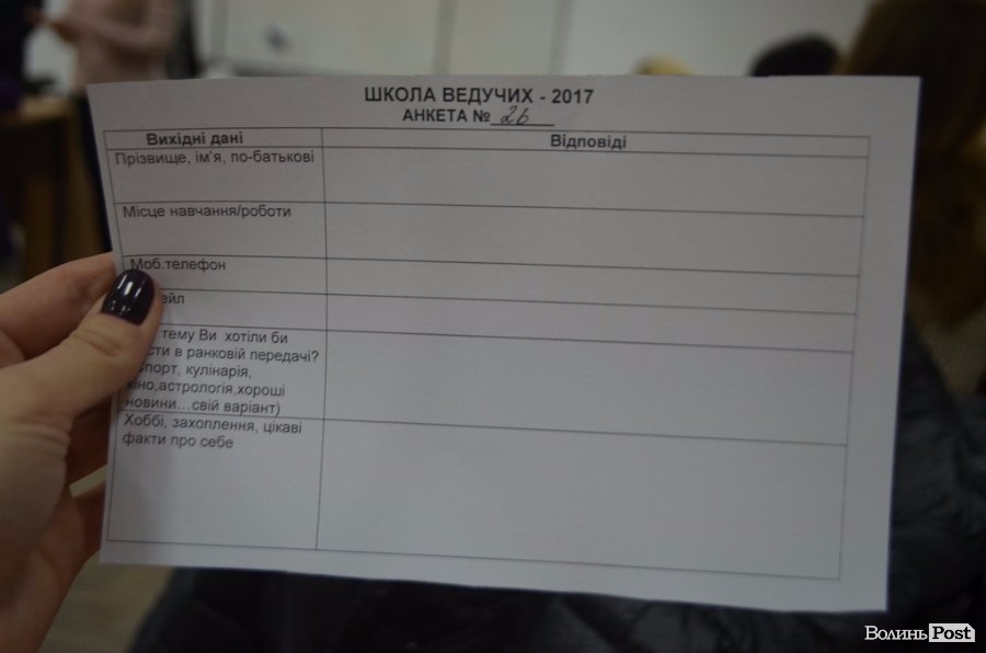 На початку усім присутнім роздали анкети, щоб дізнатися більше про майбутніх претендентів. Опісля команда телешоу "Ранок Нової Волині" розділилися на три "столи" та по-черзі опитували кандидатів у телеведучі.