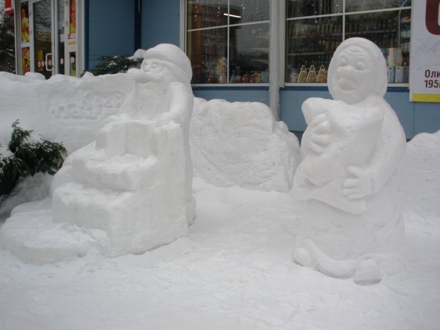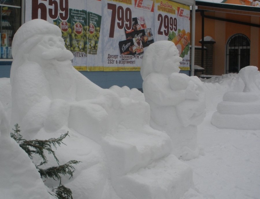 Снігові скульптури зліпили у суботу, 22 грудня, на проспекті Президента Грушевського неподалік від стадіону «Авангард».