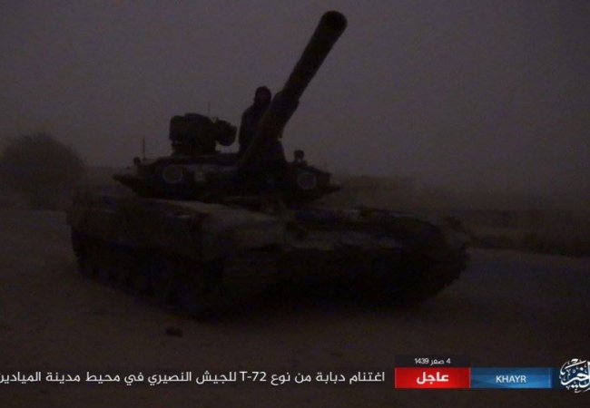 «Пропагандисти так званої «Ісламської держави» опублікували фотографію Т-90, захопленого у проасадівських сил, яким його було поставлено з Росії. Як повідомляють дослідники, техніку було захоплено під час контратаки бойовиків, які скористалися піщаною бурею, в районі міста Меядін на південний схід від Дейр-ез-Зора. Судячи з підпису на фотографії, в ІД помилково визначили захоплений ними танк як Т-72. Це третій відомий випадок, коли російський Т-90 виявляється в руках супротивників Асада», - йдеться в повідомленні.