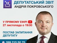 У вівторок, 27 листопада, депутат Андрій Покровський прозвітує перед лучанами про виконану роботу за рік що минає