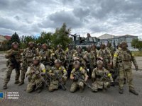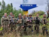Воїни 14 ОМБр пофарбували у синьо-жовтий знак при в'їзді у звільнений Куп'янськ. ФОТО